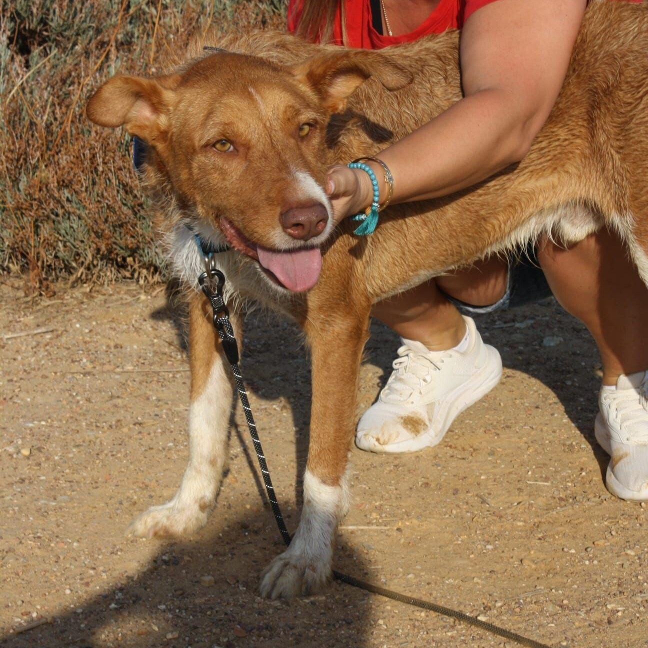 After the positive respite that he had enjoyed with his rescuer, Scoby is not able to cope with the confinement and the depressing reality of being back in kennels. Scoby is a beautiful, intelligent young soul, with a gentle personality. He walks well on the lead and “Sits” on command [in Spanish!] but he will probably need more recall training. He gets along well with other dogs and has no resource or guarding issues.